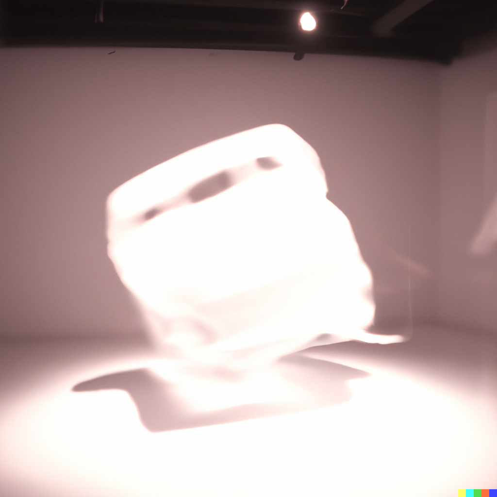 abstract sculpture in a white room with overhead lighting