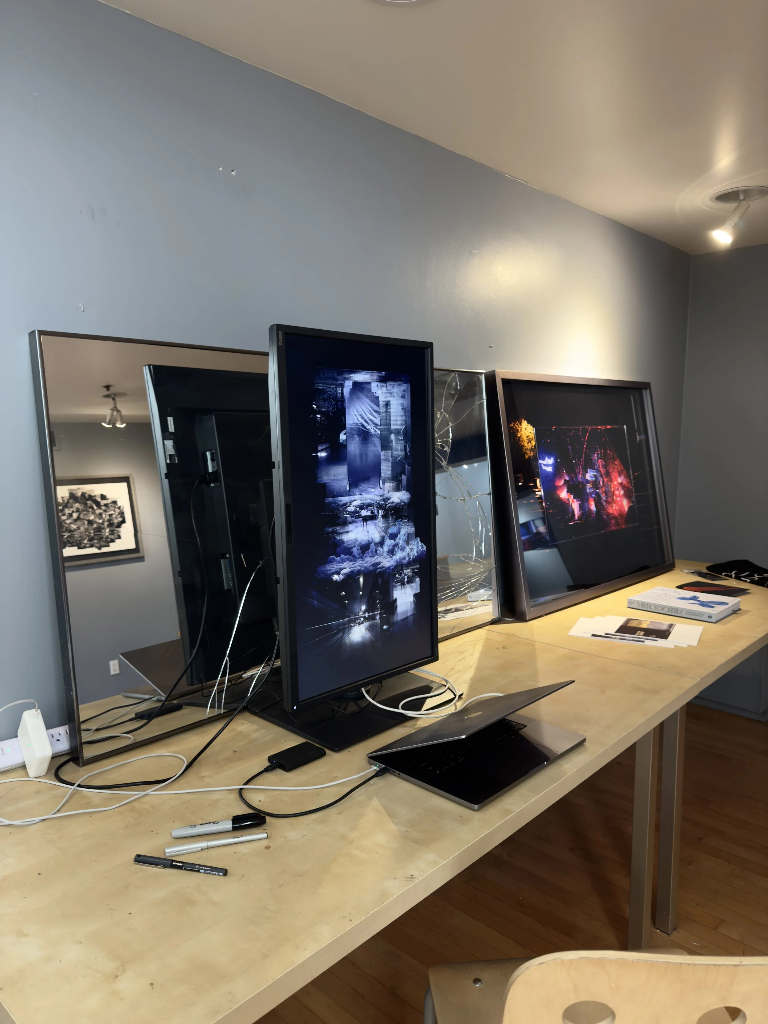 36 x 96” multi-panel lenticular work, broken mirror, photography, digital collage